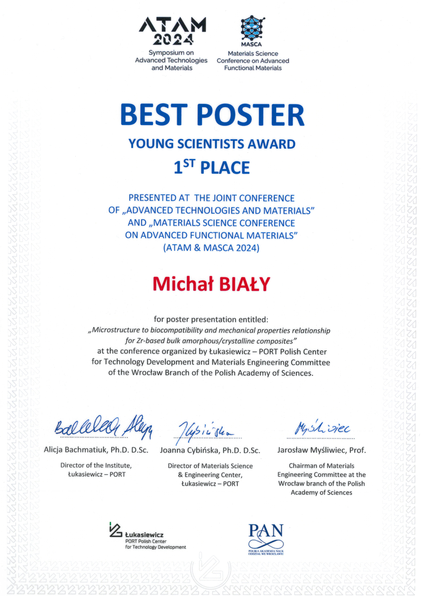 W dniach 5–7 czerwca 2024 odbyły się połączone konferencje ATAM (Symposium on „Advanced Technologies and Materials) & MASCA (Materials Science Conference on Advanced Functional Materials) 2024.