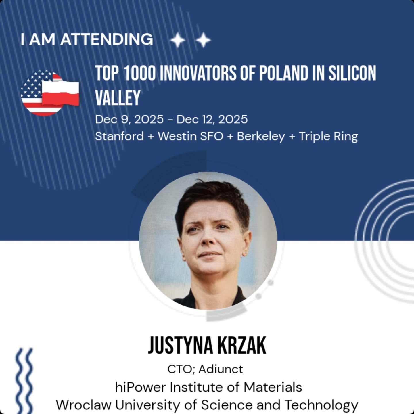 Wśród delegatów jest również dr Justyna Krzak, która promuje tam start-up hiPower Institute of Materials.